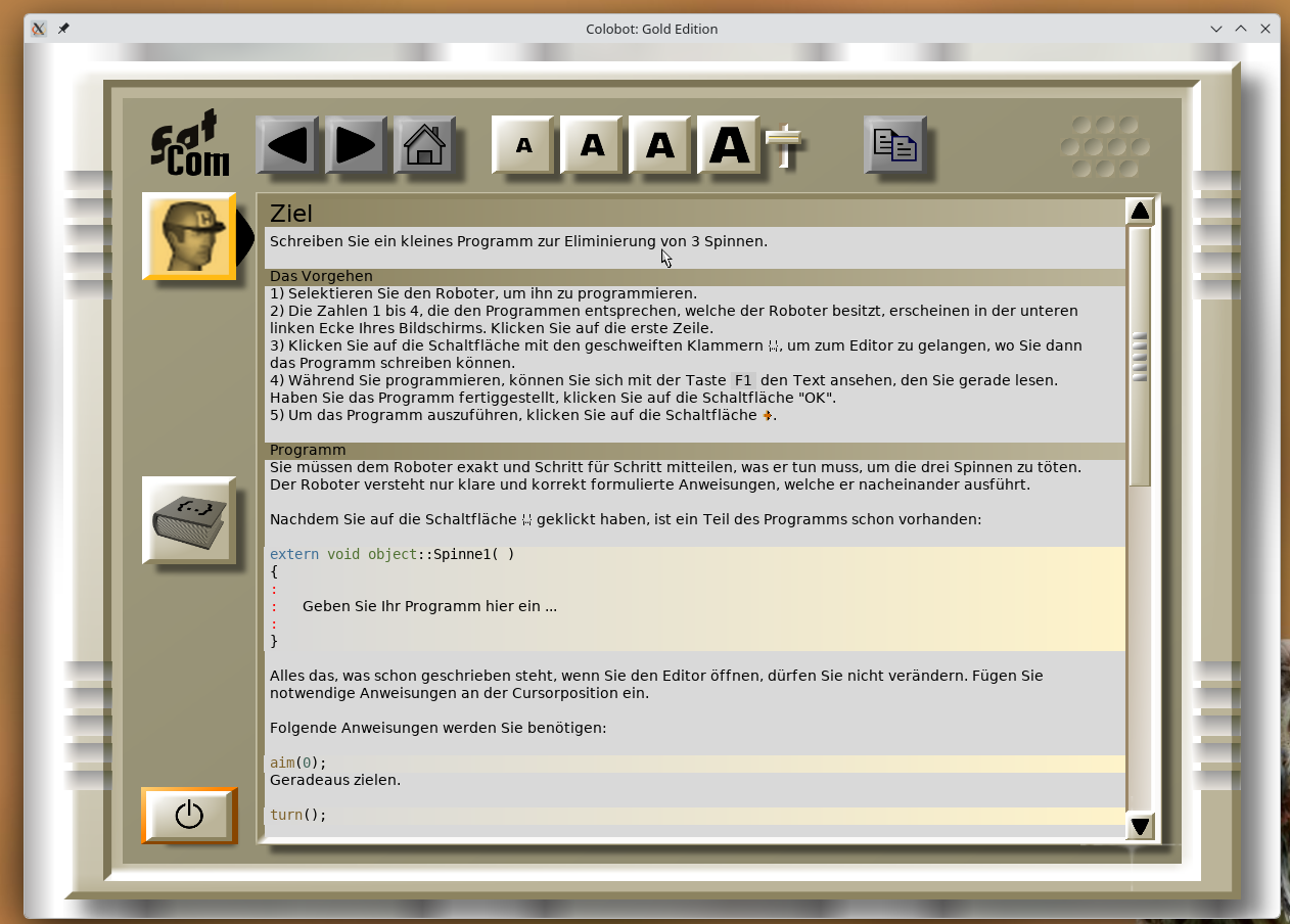 Ein Echtzeitstrategiespiel in dem man eigene Einheiten (Roboter) in einer Programmiersprache namens "CBOT" (ähnlich zu C++ und Java) programmieren muss um Fortschritte zu erreichen. Ziel ist es einen neuen Planeten zum Leben zu finden und dieses Vorhaben unbeschadet zu überstehen. Man kann die Menschheit retten UND dabei noch Programmierkenntnisse erlangen.