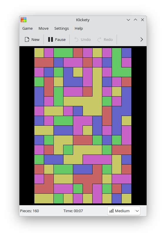 Klickety ist die angepasste KDE-Version des Spiels Clickomania. Die Spielregeln sind mit denen des Spiels Same vergleichbar: Das Spielfeld muss durch Anklicken von gruppierten Stücken geleert werden. Das grundsätzliche Ziel besteht im Erreichen einer möglichst niedrigen Punktzahl. Es bietet Unterhaltung für alle Fähigkeiten und eine Herausforderung hinsichtlich des logischen Denkvermögens sofern eine möglichst niedrige Punktzahl erreicht werden soll.