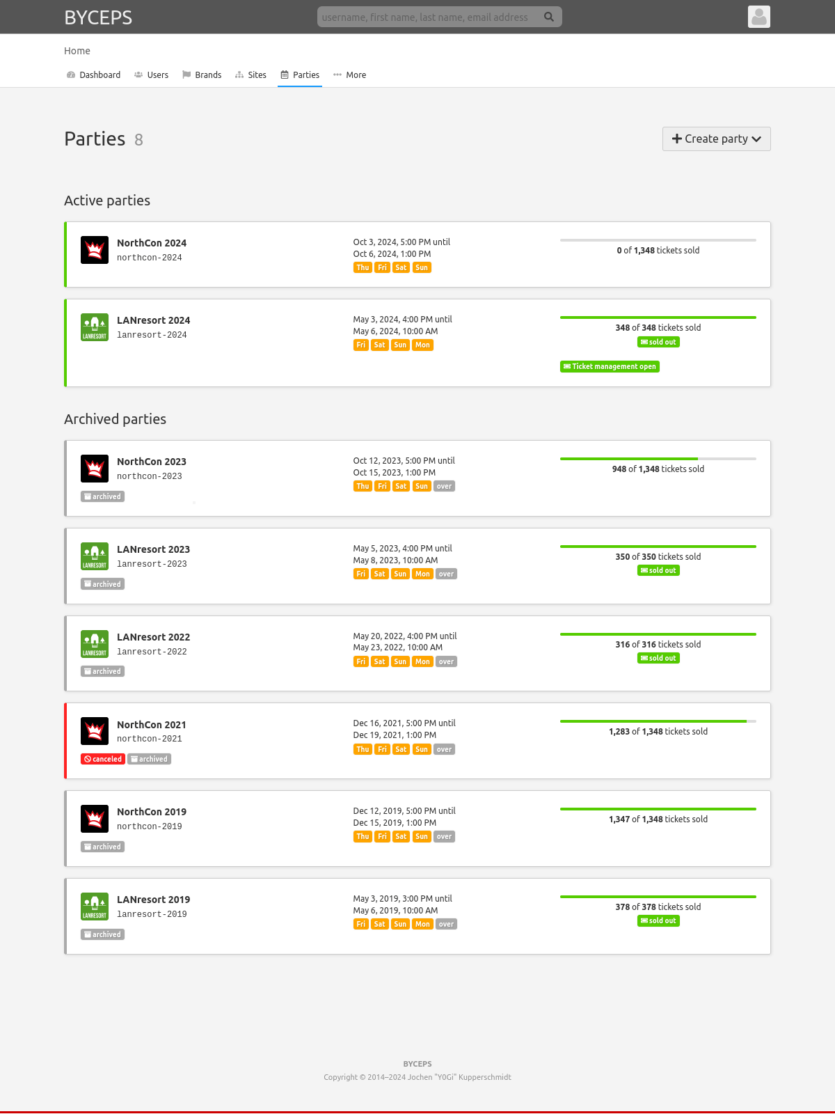 BYCEPS (Bring-Your-Computer Event Processing System) ist ein freies und offenes Tool zur Vorbereitung und Durchführung von LAN-Parties.