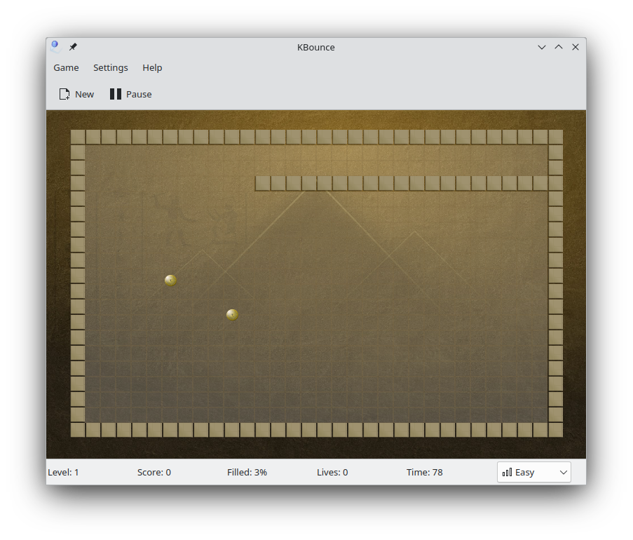 KBounce ist ein Arcade Breakout-Clone aus der KDE-Games-Reihe. Über den Paketmanager oder auch über Flatpak oder Snap installierbar.
