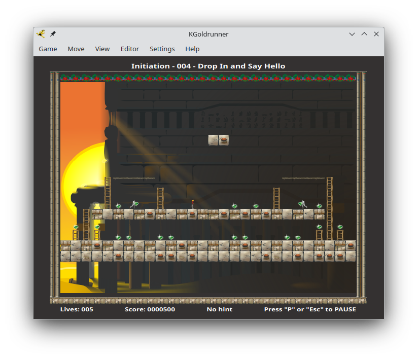 KGoldrunner aus dem KDE-Games-Pack ist ein klassischer Sidescroller bei dem man durch ein Labyrinth irrt. Für Linux über den Paketmanager oder Flatpak oder Snap erhältlich.
