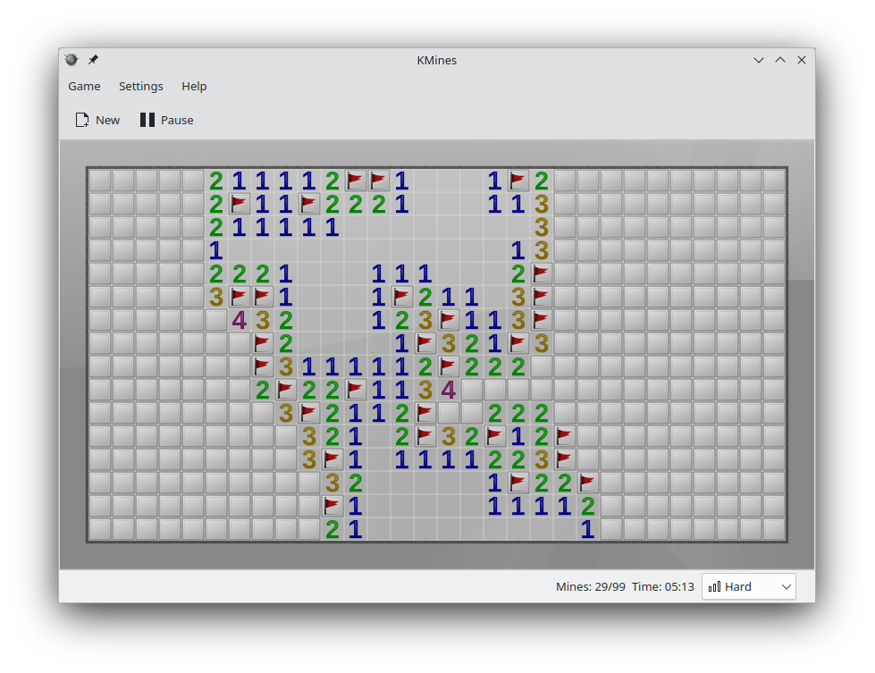 Das klassische Minesweeper vom KDE Games-Team. Ist neben dem Paketmanager über Flatpak oder Snap installierbar.