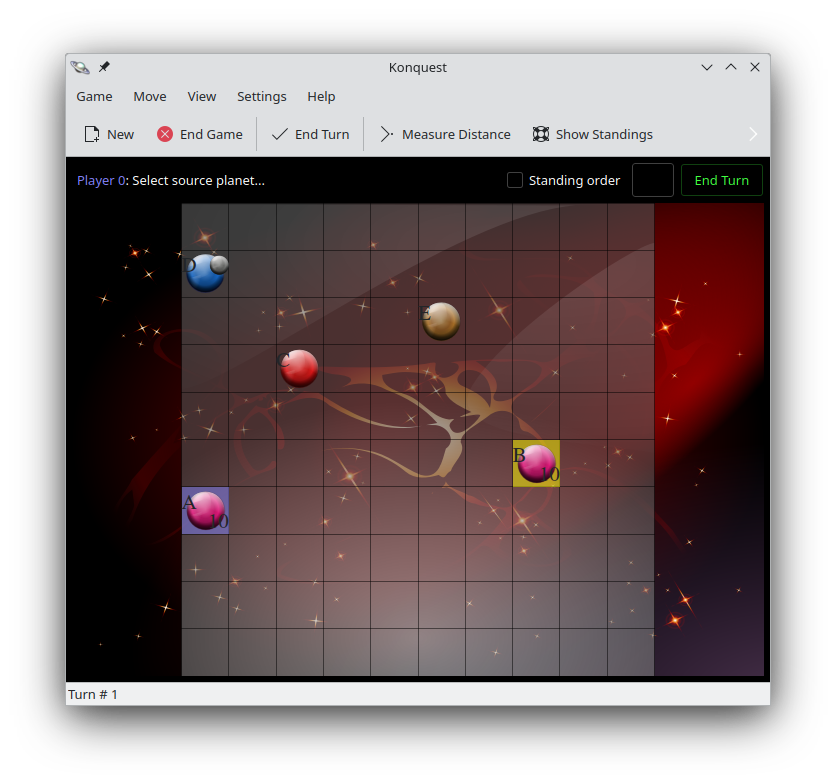 Konquest ist eine Version von Gnu-Lactic-Konquest. Spieler schicken Schiffe zu anderen Planeten, um sie zu erobern. Ziel des Spiels ist es, ein galaktisches Imperium zu beherrschen und alle Planeten der Gegner zu erobern.