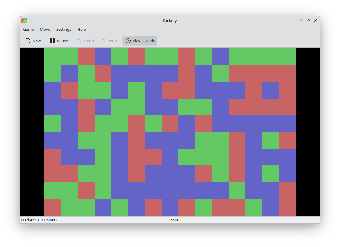 KSame ist ein einfaches aber herausforderndes Spiel, bei dem passende Farben gefunden werden müssen. Das Spiel ist dem ehemals berühmten Spiel SameGame nachempfunden. Ziel des Spiels ist, das gesamte, mit farbigen Murmeln gefüllte Spielfeld zu leeren. Ähnelt Klickety.