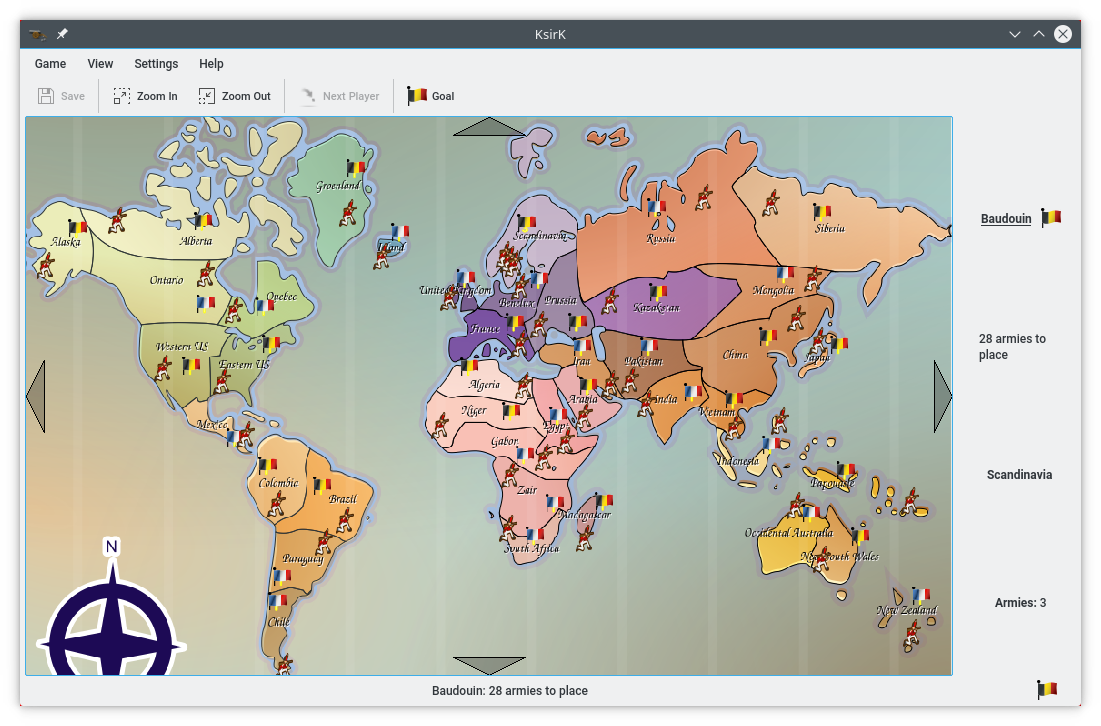 KsirK ist eine computergestützte Version des bekannten Strategiespiels Risiko. Das Spielziel ist es, die Weltherrschaft zu erlangen. Dies geschieht durch das Angreifen der Gegner in den Nachbarländern mit den eigenen Armeen.