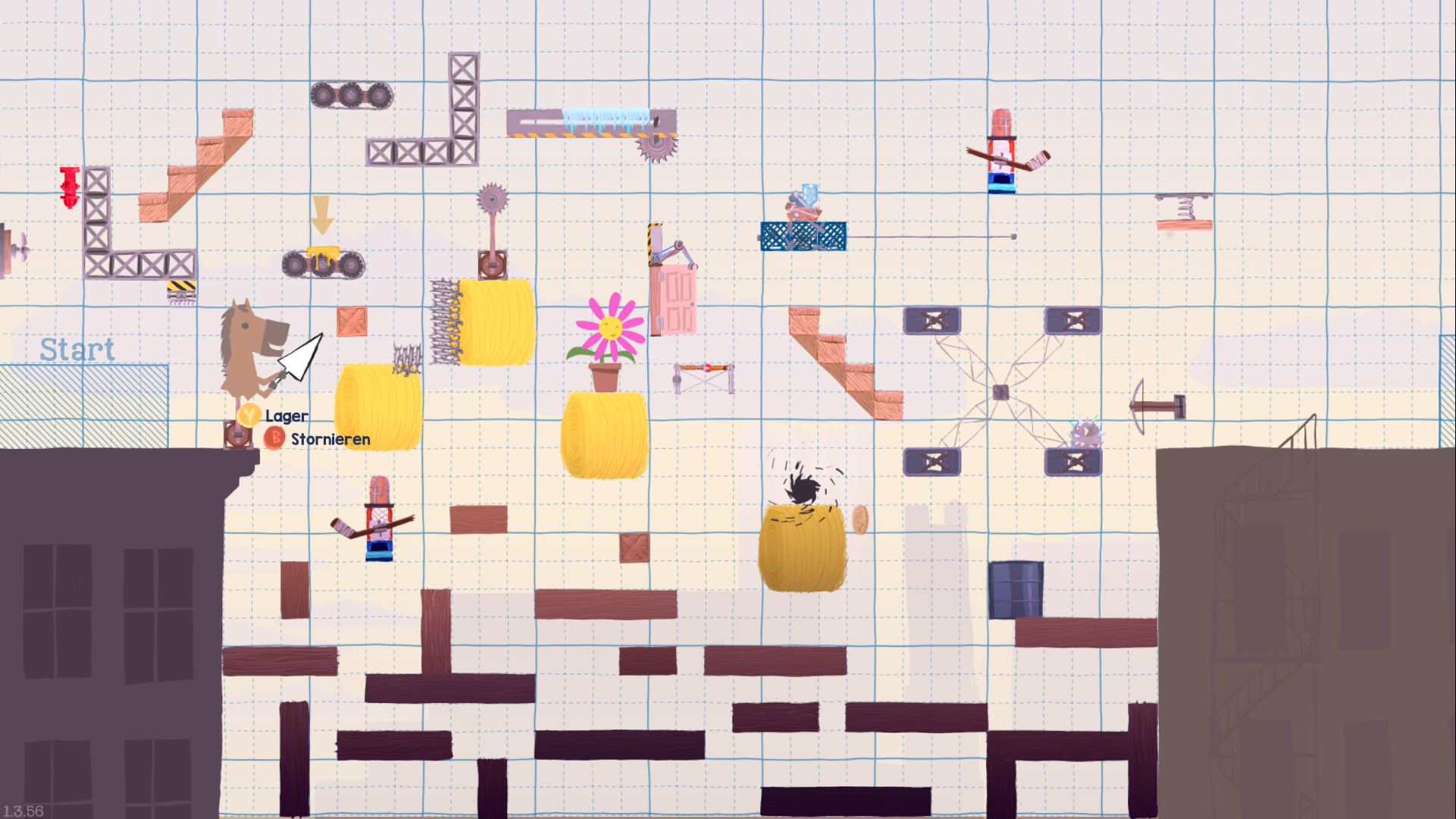 Ultimate Chicken Horse fußt auf Unity und wie bereits erwähnt, in einer sehr niedlich anmutenden Graphik daherkommend. Die Musik ist recht funky, auch die Tiere intonieren ihr Springen und ihre Aktionen mit artgerechten Geräuschen.